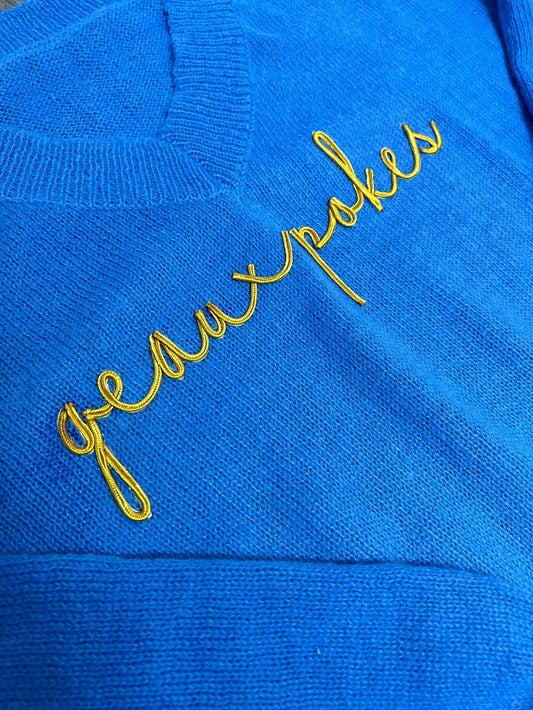Geaux Pokes Blue Long Sleeve V-Neck Top